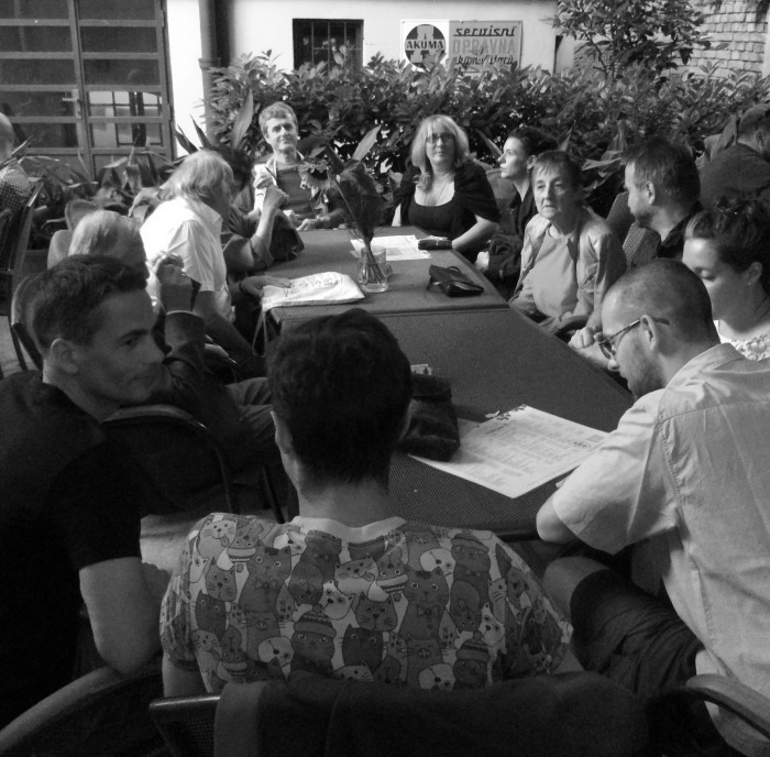 Záver výstavy je vždy tak trochu smutný (ako vždy keď sa končí niečo pekné) a tak často robievame posledné dni výstavy stretnutia pre ilustrátorov, pre zberateľov, kunsthistorikov aj pre stabilných návštevníkov galérie. Veľa spomienok, veľa smiechu, trochu vína...